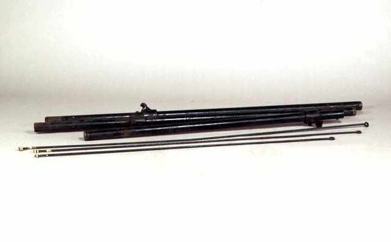 Section of metal frame which forms part of a set of lighting equipment, which was purchased in Melbourne around 1978 by Dimitri Katsoulis. This equipment comprised the stage lighting for performances of the Greek Shadow Puppet Theatre and was used by Dimitri in his performances in Victoria and in South Australia from 1978 to 1991. In order to perform shadow puppet theatre, it is essential to have an artificial light source.
