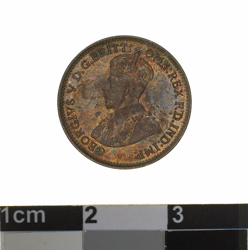 Obverse: GEORGIVS V D.G. BRITT: OMN: REX F.D. IND: IMP: Reverse: THREEPENCE 1922 ADVANCE AUSTRALIA