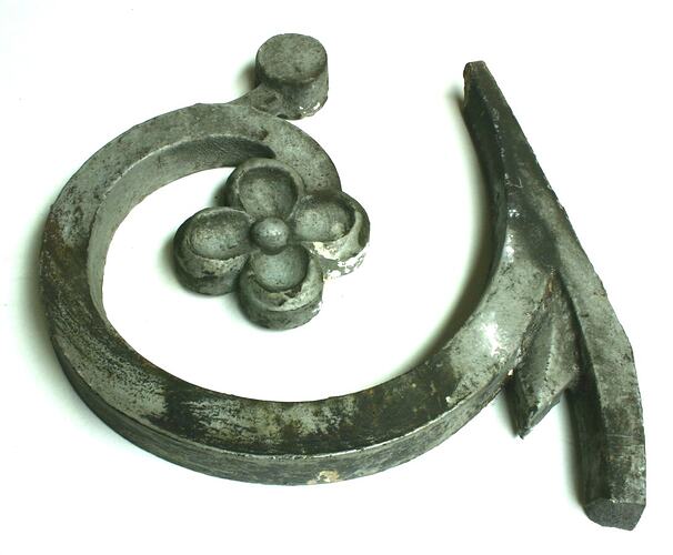 Cast, decorative metal finial from the Royal Exhibition Building, likely to have been removed during the building's restoration in the late 1980s - early 1990s.