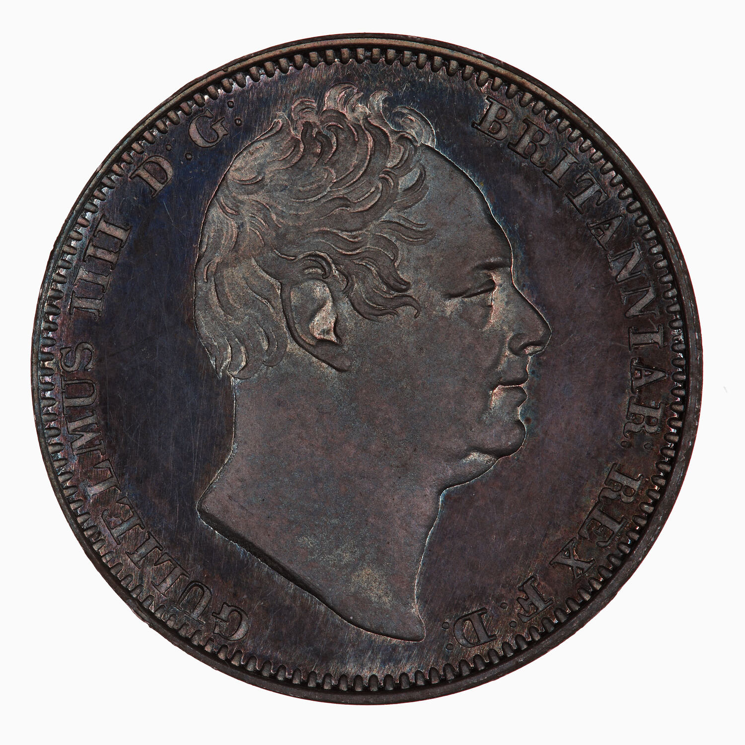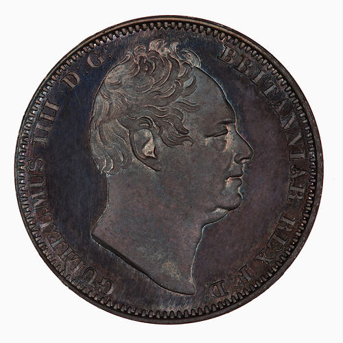 Bare head of the King facing right; around, GULIELMUS IIII D:G: BRITANNIAR: REX F:D:.
