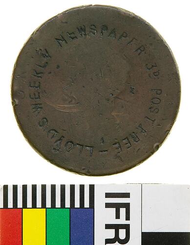 Obverse: LLOYDS WEEKLY NEWSPAPER THREEPENCE POST FREE Reverse: LLOYDS WEEKLY NEWSPAPER THREEPENCE POST FREE