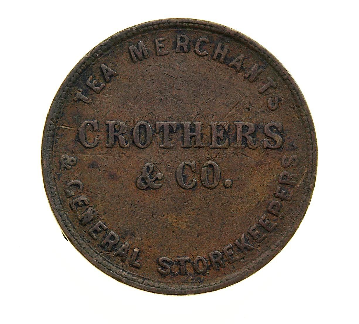 Obverse: CROTHERS & CO. TEA MERCHANTS GENERAL STOREKEEPERS Reverse: THE ORIGINAL CASH STORE MAIN ST. STAWELL