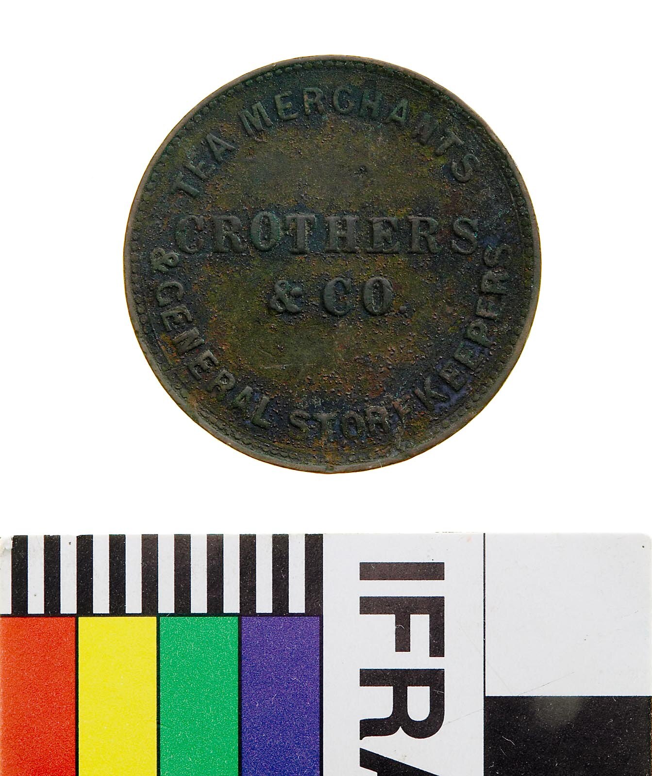 Obverse: CROTHERS & CO. TEA MERCHANTS & GENERAL STOREKEEPERS Reverse: THE ORIGINAL CASH STORE MAIN ST. STAWELL