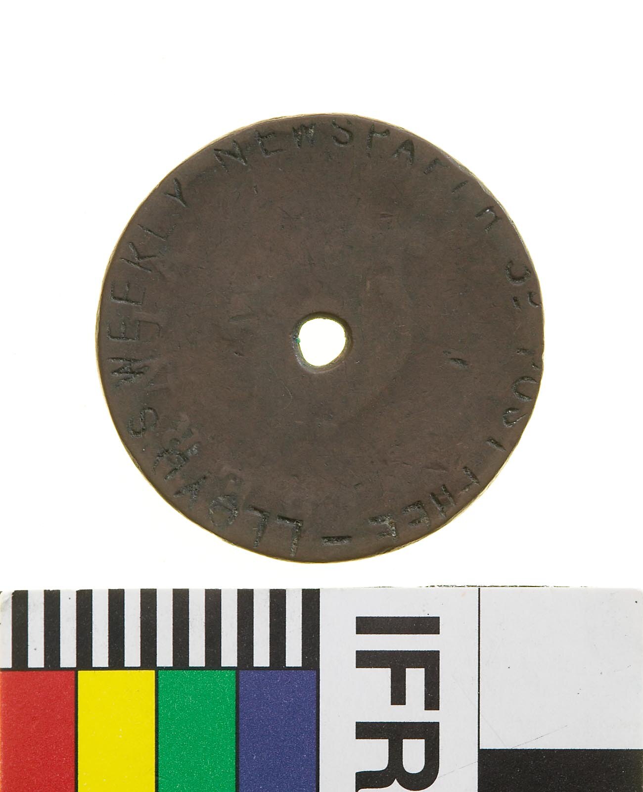 Founded by the British publisher Edward Lloyd (1815-1890), Lloyd's Weekly Newspaper was originally issued from 1842 as Lloyd's Illustrated London Newspaper, it initially sold for two pence, a third the sixpence cover price of its main rival the Illustrated London News. Lloyd had kept the price low by publishing the newspaper illegally without paying the required stamp duty, but after seven weeks was forced to relaunch the publication as Lloyd's Weekly London raising the price to threepence to cover the duty. It soon became one of Britain's first mass market newspapers. In 1849, it was renamed Lloyd's Weekly Newspaper, providing an earliest likely date for these tokens. By 1853, circulation had reached 90,000 copies a week. In 1860 Lloyd dropped the price back to one penny and circulation rose to 500,000 copies by 1872. In 1896, six years after Lloyd's death, it became the first newspaper to regularly sell one million copies an issue. Lloyd spent large amounts of time and money promoting the newspaper, with one of his ploys being to pay his staff in coins stamped with the publications name, although this practise was later declared to be illegal under the Coinage Act 1861.