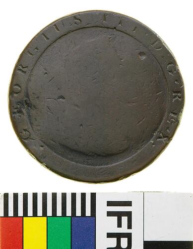 Possibly stamped by W. Box or W. Brown, who both issued other token patterns around this period. -