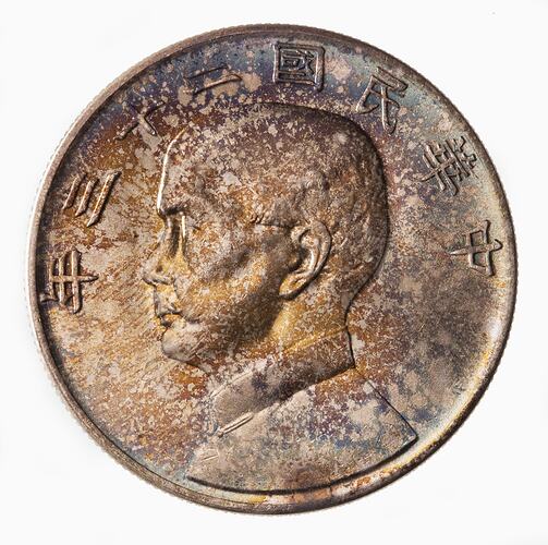Silver 1 Dollar (Yuan) coin issued by the Republic of China in Year 23 (1934 AD)