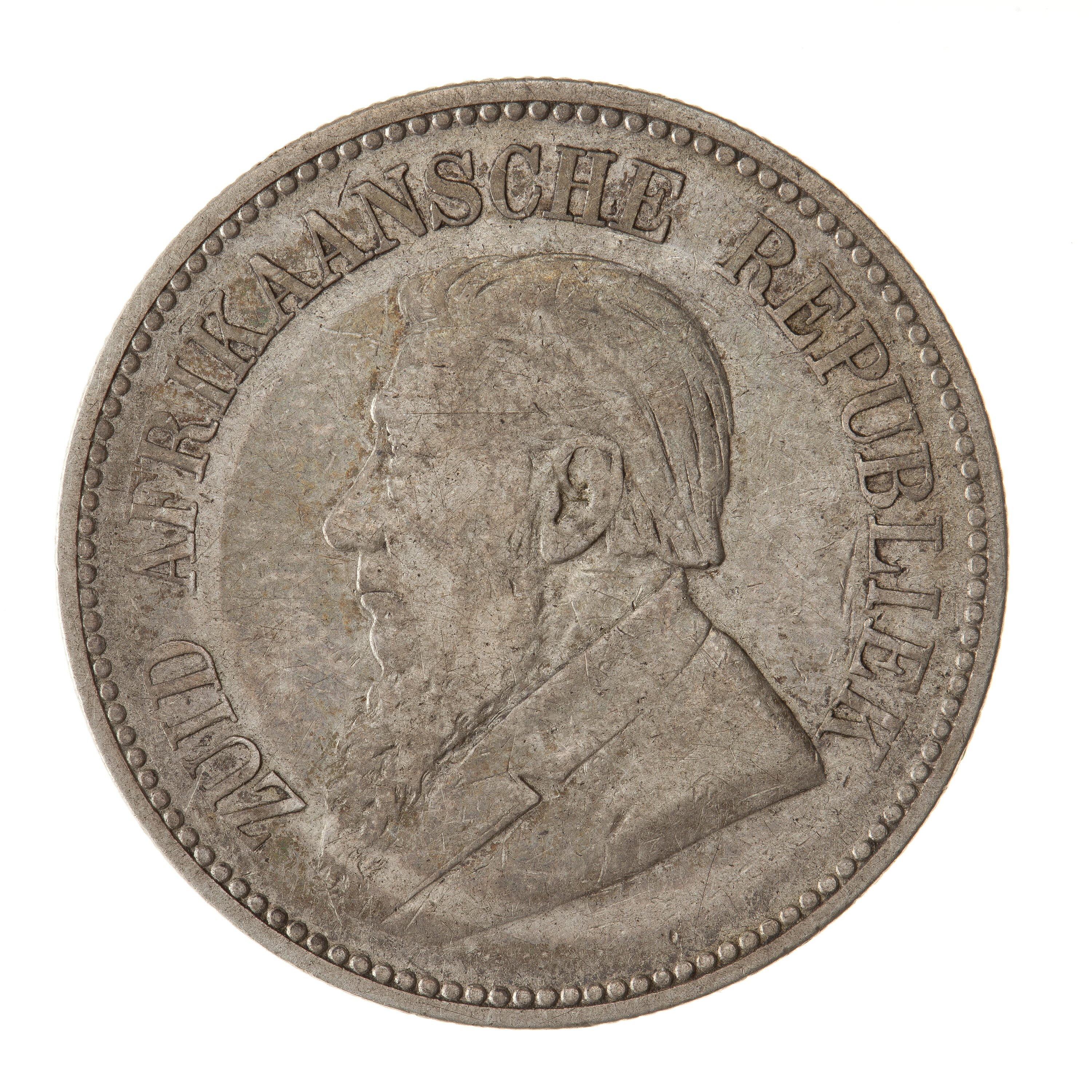 Draped bust of Paulus Kruger facing left; around, ZUID AFRIKAANSCHE REPUBLIEK