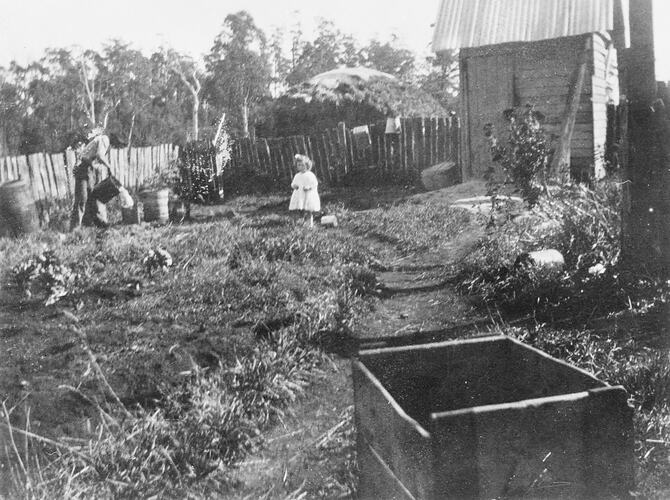 Photograph of the area near the dairy on the property of Frederick Charles Williames (1893-1985), at Hill End (Gippsland), Victoria, circa 1920.