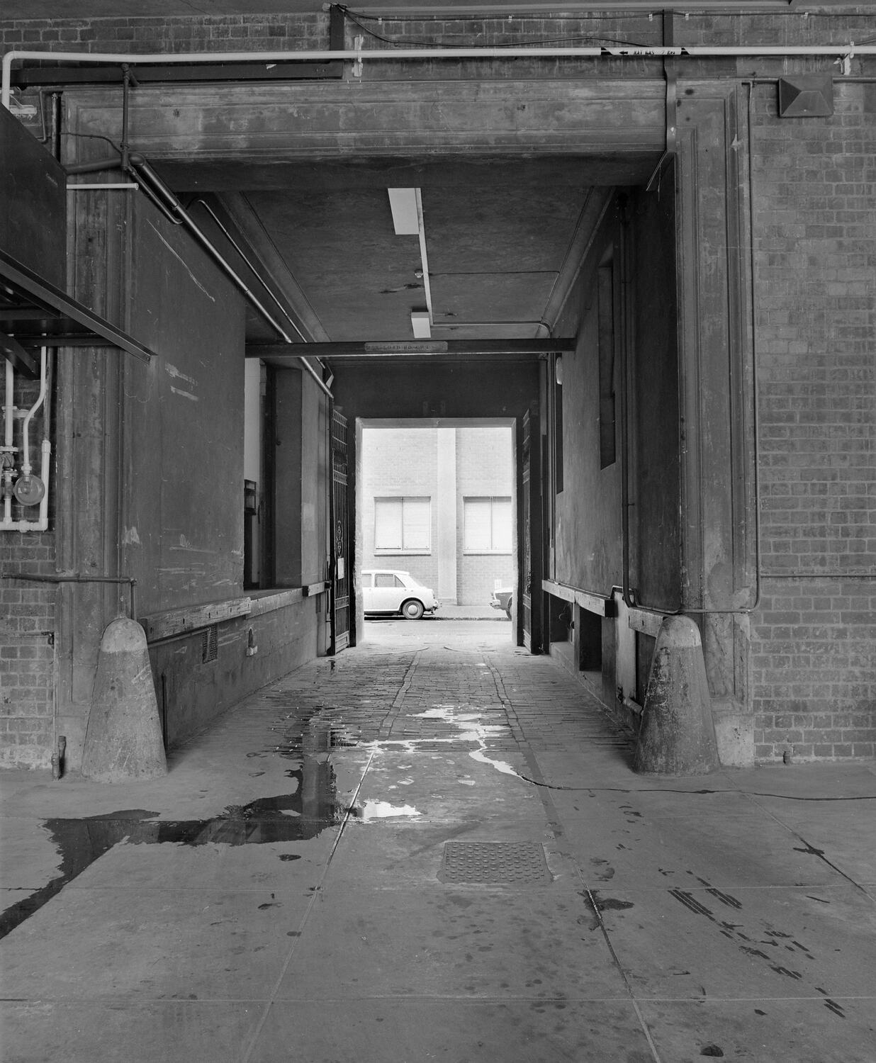 Copy of photograph negative depicting the Little Lonsdale Street courtyard entrance to the Science Museum in 1975, prior to alterations.