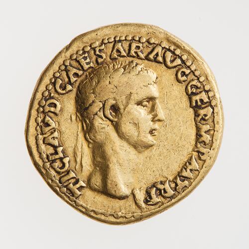 Gold Aureus struck during the reign of Claudius in 41 or 42 AD, Ancient Roman Empire. Minted by Rome. Claudius, thanks largely to his weak constitution and continual illnesses, was overlooked in the plotting for the throne. He was apparently found hiding in the palace after the assasination of Gaius, and expected to be killed not raised to emperor. His name, Germanicus, appears on this coin, it was only used at the beginning of his reign.