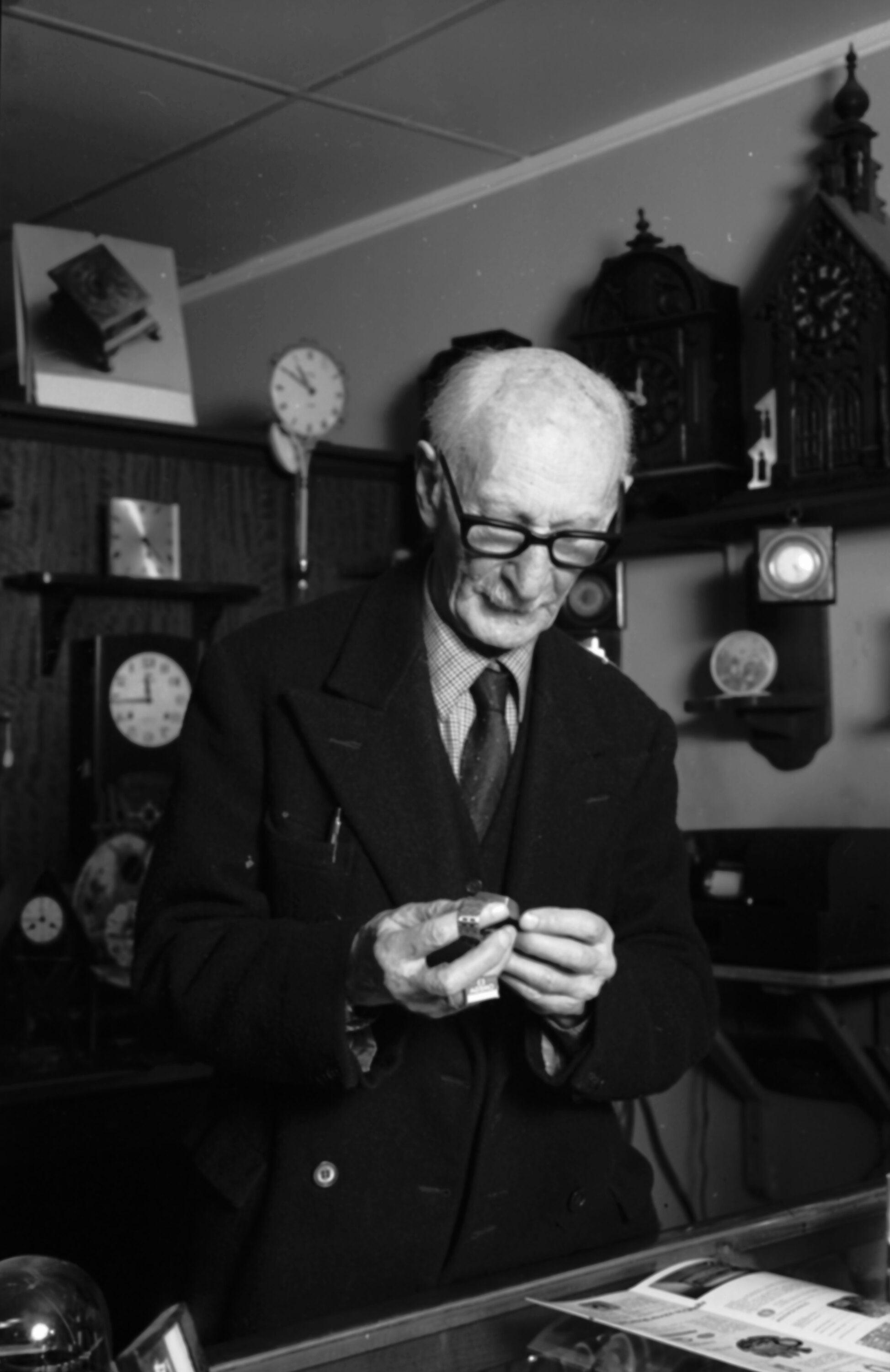 Photograph of Joseph Lowy, Melbourne watchmaker, who was appointed Honorary Curator of Horology to the Museum of Applied Science (later Science Museum of Victoria) in 1953, retaining the position until his death in 1979.