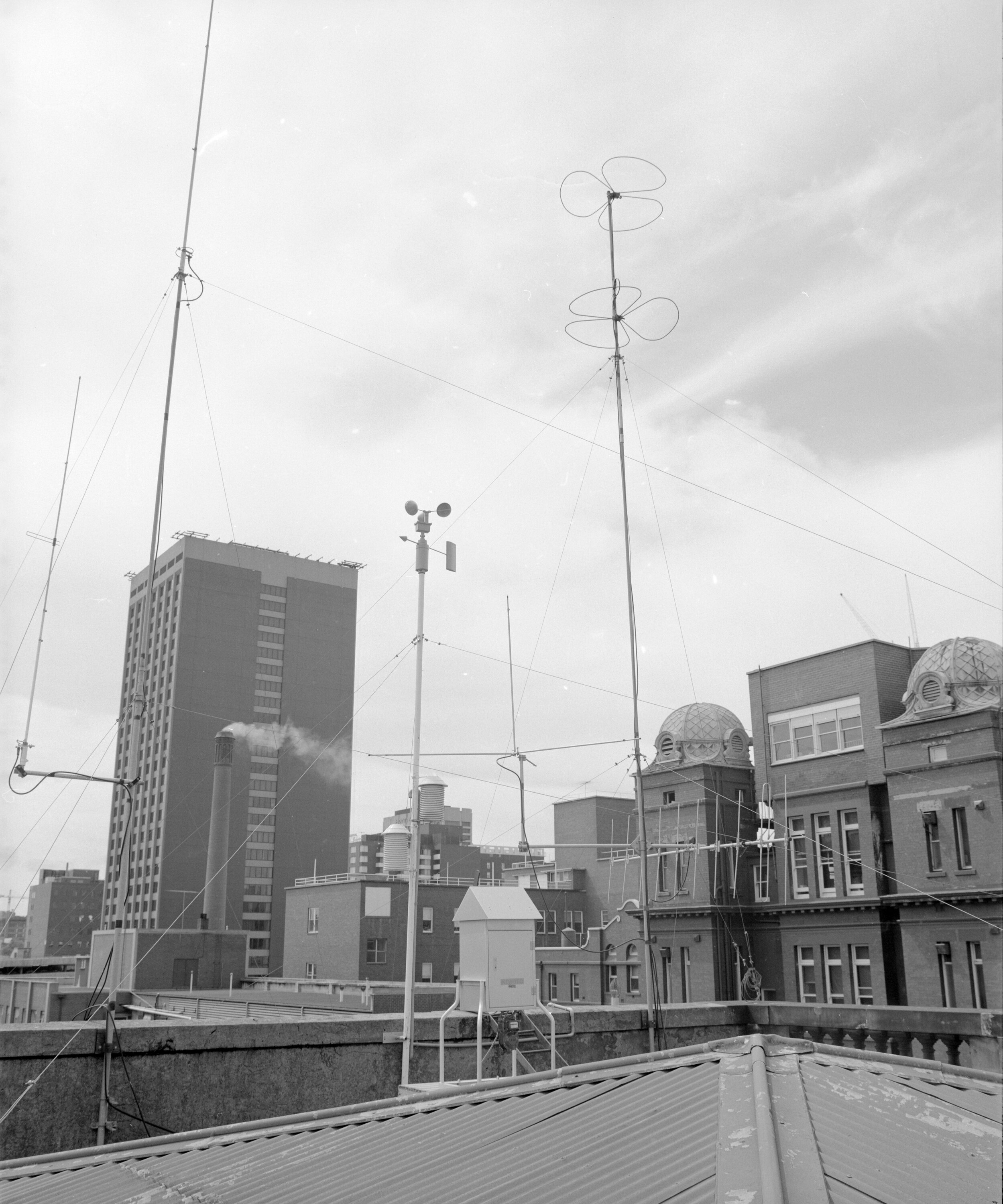 Copy of photograph negative depicting E.P.A. instruments on the roof of the Science Museum in 1975.