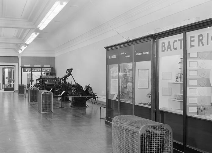 Museum History, Exhibitions, Displays, Display Cabinets, Display Cases, Interior Views, Printing, Printing Equipment, Printing Industry, Printing Machinery, Printing Machines, Printing Works, Typesetting, Typewriters, Bacteriology, Healthcare & Medicine, Medicinals & Drugs