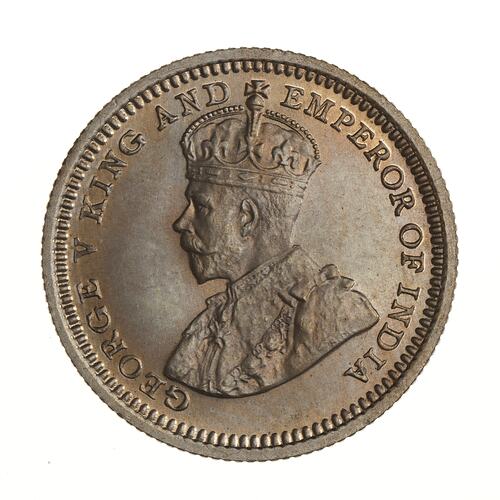 Crowned bust of George V facing right; around, GEORGE V KING AND EMPEROR OF INDIA