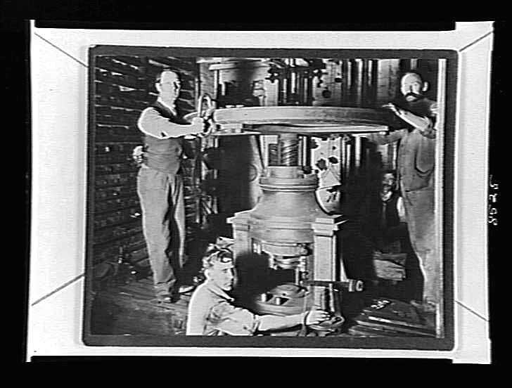 Copy photograph of coin press used to make numismatics.