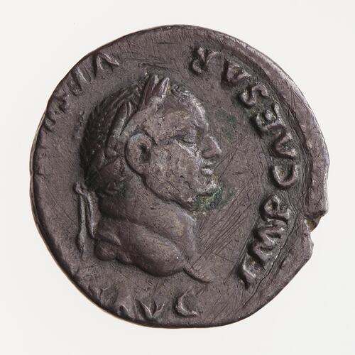 Laureate head of Vespasian facing right; around, IMP CAESAR VESPAS[IANVS] AVG