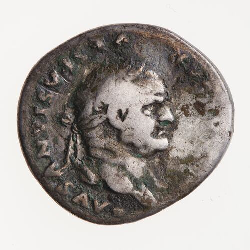 Laureate head of Vespasian facing right; around, [IMP C]AESAR VESPASIANVS AVG