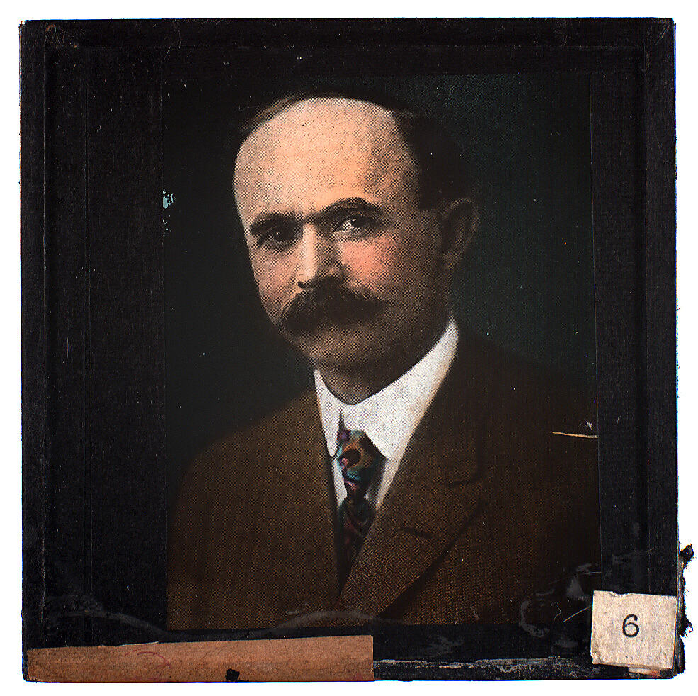 Lantern slide of a photographic portrait of a man.