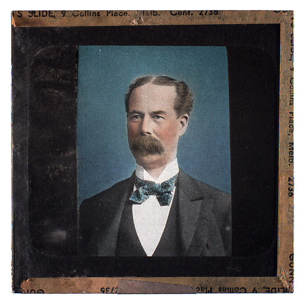 Lantern slide of portrait photograph of a man. Made by Alex Gunn & Sons, Melbourne, Victoria, circa 1930s.