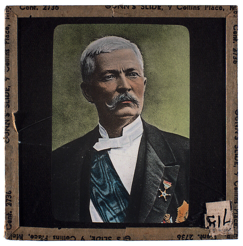 One of a set of over 420 lantern slides, used by lecturer Walter S. Binks, a popular psychology and vocational guidance lecturer based in Melbourne, Victoria. Binks gave lectures throughout Australia in the 1930s and 1940s. Binks advertised his lectures as associated with the Australasian Opportunity League or Universal Opportunity League. Binks often used portraits of famous men or distinctive looking faces to discuss his beliefs in the relationship between physiognomy and personality.