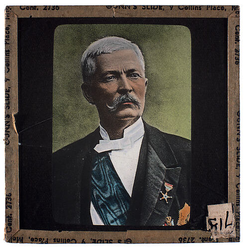Lantern slide of photographic portrait of a man. Made by Alex. Gunn & Sons, Melbourne, Victoria, circa 1930s.