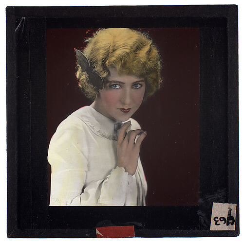 Lantern slide of hand coloured photograph of woman.