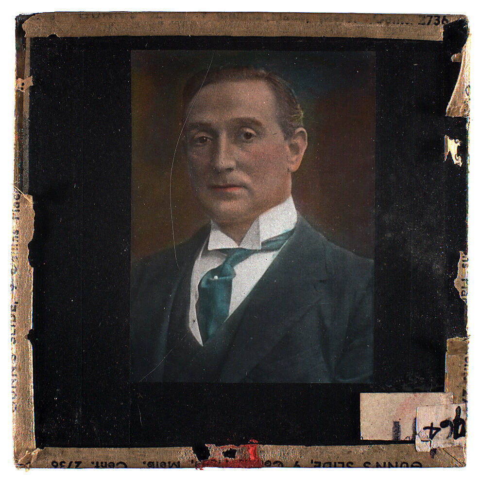 Lantern slide of photographic portrait of a man. Made by Alex. Gunn & Sons, Melbourne, Victoria, circa 1930s.