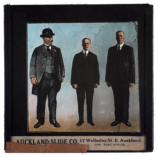 Text, on slide: AUCKLAND SLIDE CO. 17 Wellesley St. E. Auckland/OPP. POST OFFICE.