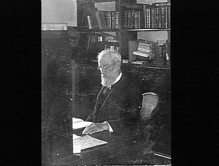 Robert Ellery, Government Astronomer, at his desk in the Astronomer's office, Melbourne Observatory.