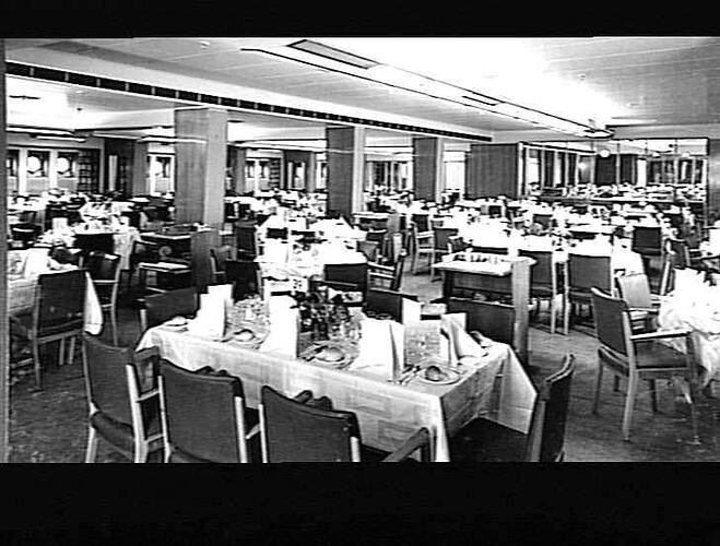 Chairs, Crockery, Cutlery, Dining Rooms, Flowers, Restaurants, Ships, Tables