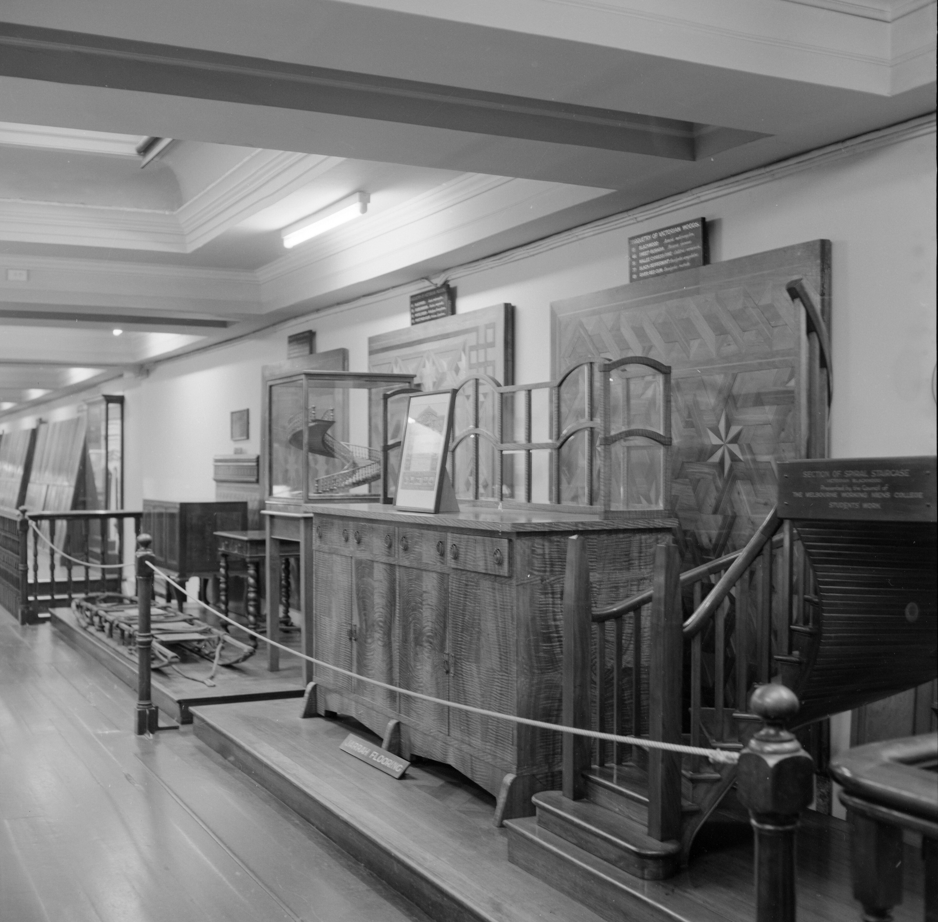 Photograph negative depicting the carpentry displays at the Institute of Applied Science, 1965.