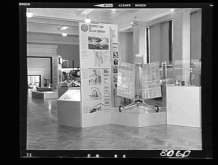 Photographic negative depicting part of the temporary Solar Energy exhibition, which opened to the public on 11 December 1975 at the Science Museum.