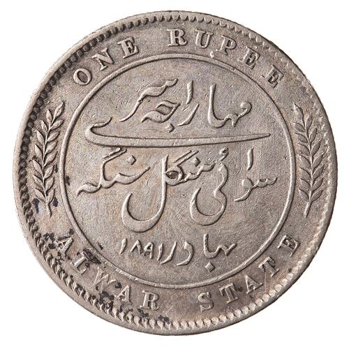 Rupee, Issued by Alwar Princely State (merged with Rajasthan in 1949), India, 1891