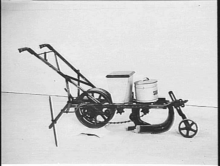 "SUNSHOE WITH MARKER: JUNE 1930" A SINGLE ROW, `SUNSHOE' SEED AND SUPERPHOSPHATE SOWER.