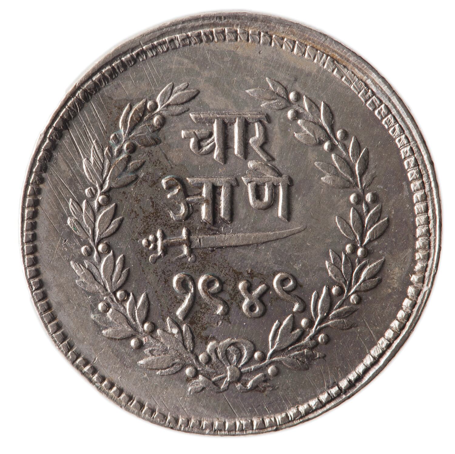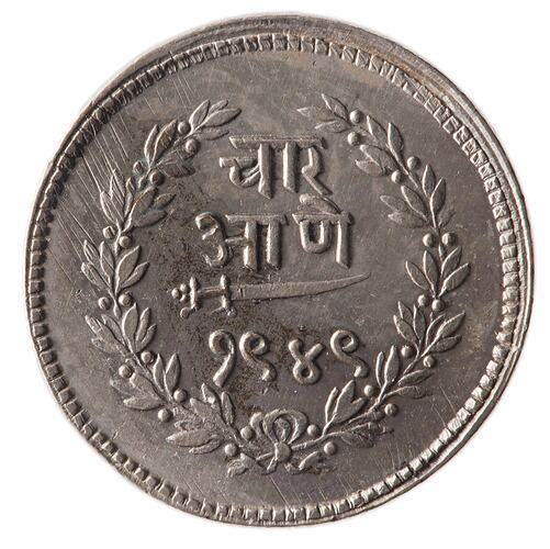 4 Annas, Milled Coinage, Issued by Sayiji Rao III, Baroda Princely State, India, 1949 VS (1892)