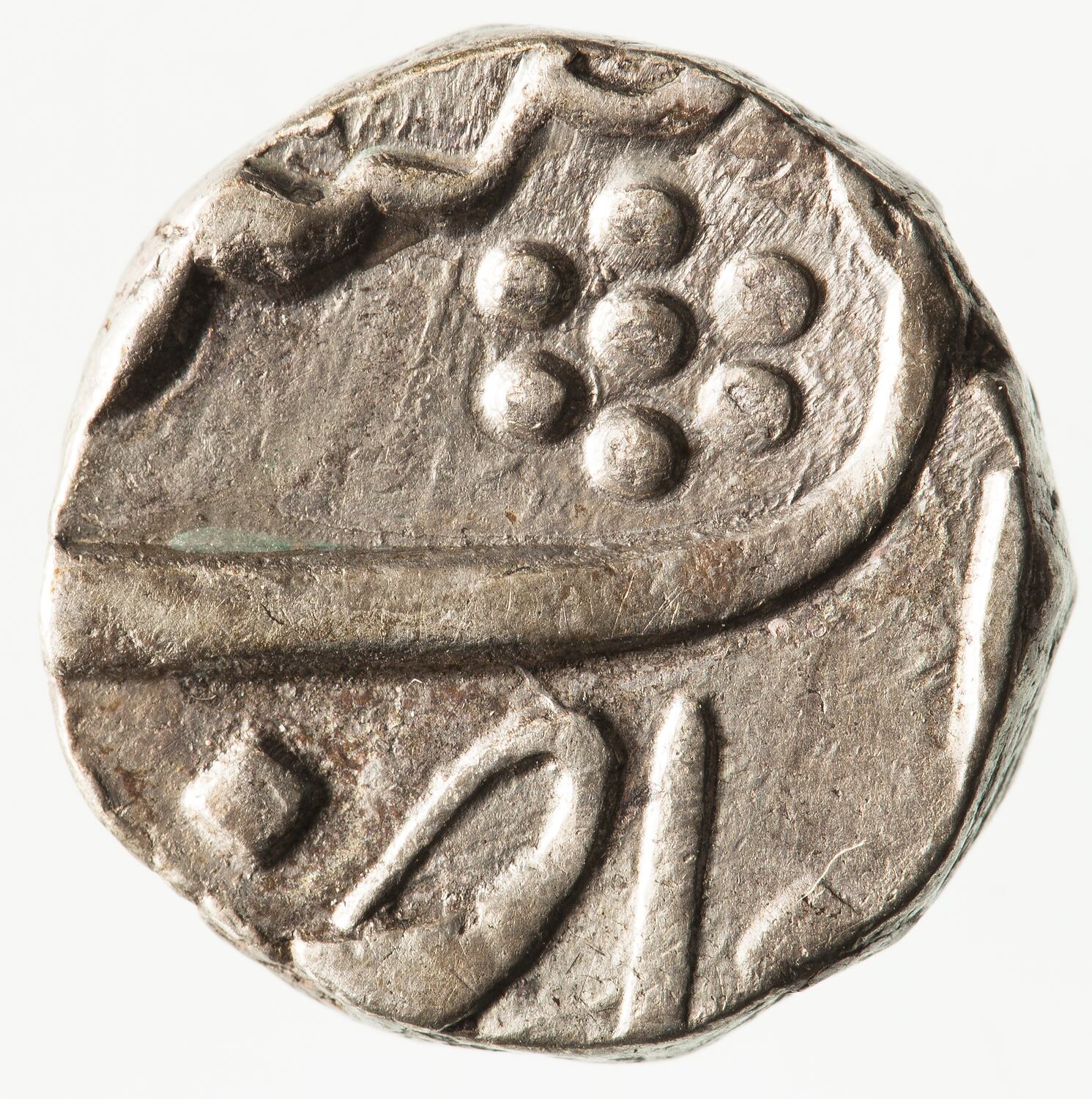 1/2 Rupee, Hammered Coinage, Issued by Khande Rao, Baroda Princely State, India, 1274-1279 AH (1857-1863). Mint not recorded. The coin has 127 of the date on the flan - the earliest recorded date for this denomination in the 1270s is 1274, hence the date span 1274-1279.
