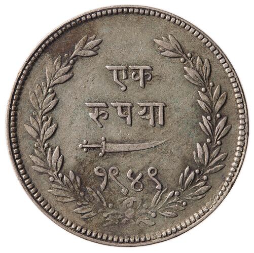 1 Rupee, Milled Coinage, Issued by Sayiji Rao III, Baroda Princely State, India, 1949 VS (1892)