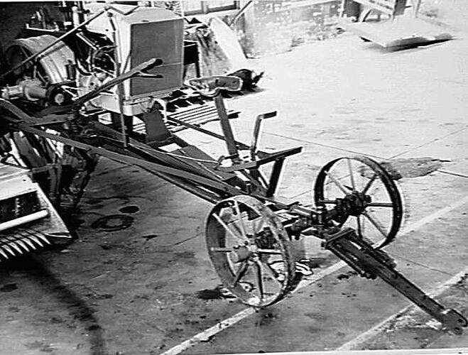 The fore carriage, etc. on a No.6 engine-functioned header. Tractor-drawn.