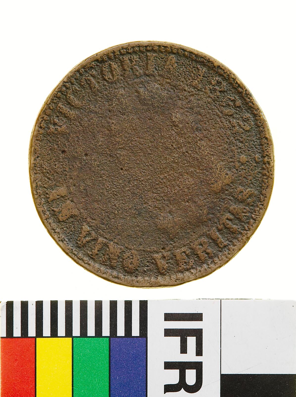 Obverse: VICTORIA 1862 IN VINO VERITAS Reverse: VICTORIA 1862 T. STOKES MAKER 100 COLLINS ST EAST MELBOURNE