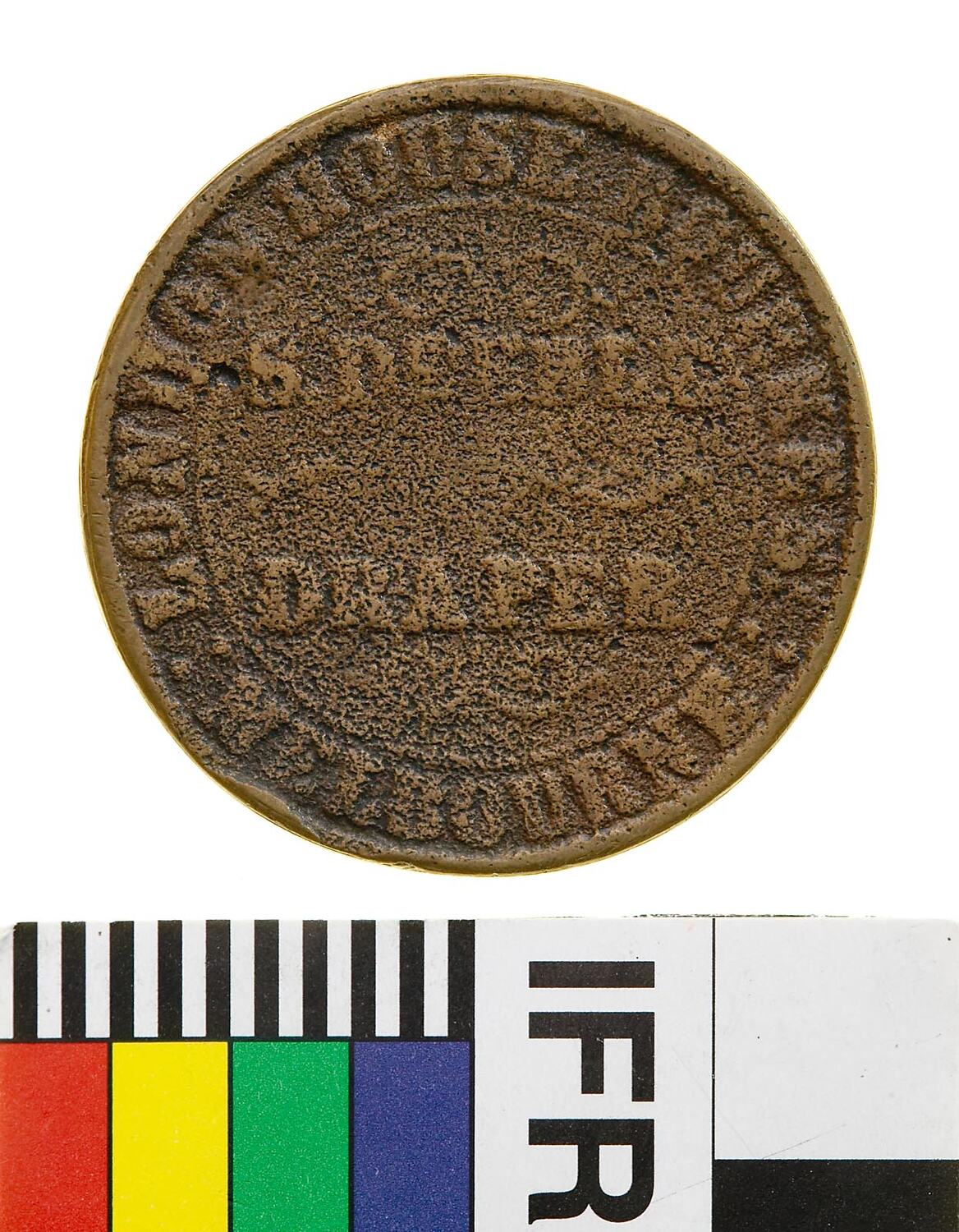 Obverse:S.DEEBLE DRAPER LONDON HOUSE BOURKE ST MELBOURNE Reverse: ADVANCE AUSTRALIA 1862