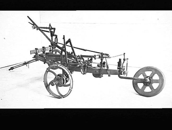 Experimental Model 'Sunray' 4-furrow disc plough with automatic lift (discs removed).
