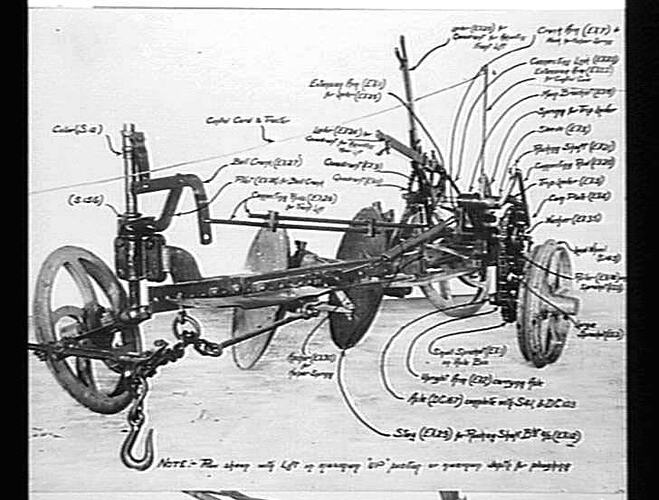 2-furrow disc plough showing all part descriptions and numbers.