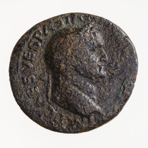 Laureate bust of Vespasian facing right; around, IMP CAES VESPASIA[N AVG COS III]