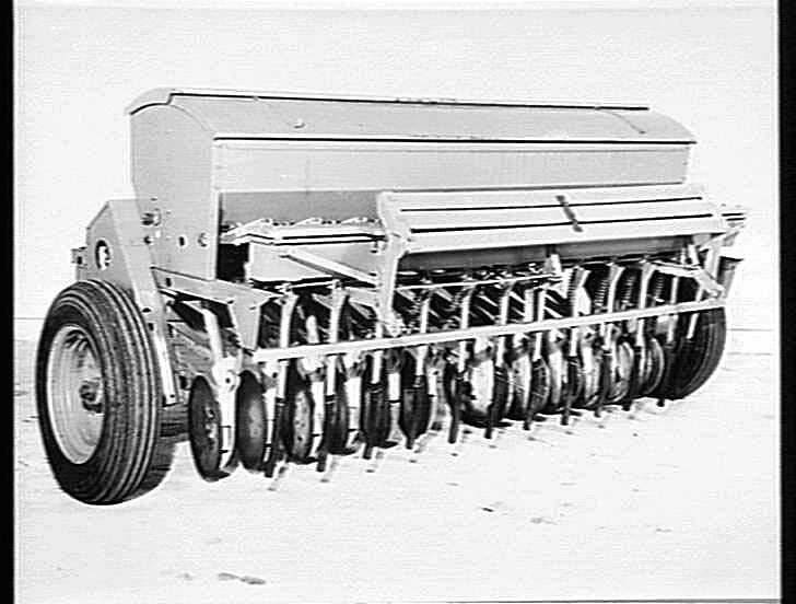 A rear view of the Ferguson FA-71 seed & fertilizer drill. Fitted with discs, not tynes. Refer to performance manual for Ferguson FA-71 drill.