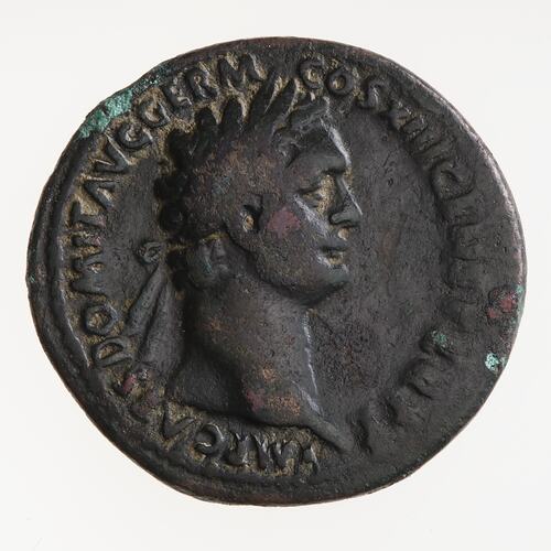 Copper As struck during the reign of the Emperor Domitian, Ancient Roman Empire, in 87 AD. Minted by Rome. Domitian was Consul for the 13th time (COS XIII on this coin) in 87 AD and for the 14th time from 1 Jan 88. The production of the coin therefore belongs in 87 AD.