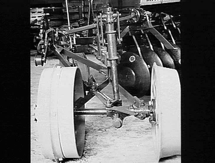The front wheel support carriage also showing the sprocket and universal drive mechanism to the grain and fertilizer hopper - the fourth of five photos giving the assembly instructions for a 10-disc 'Sunderseeder'.