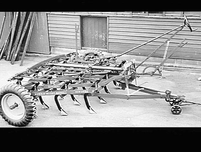 Tractor-drawn 20-tyne SunDuke scarifier.
