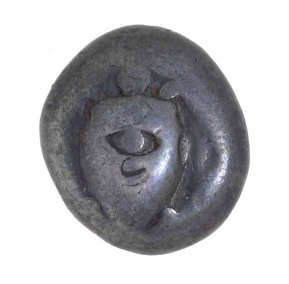 A silver stater coin issued by the city of Aegina on the island of the same name in the period 480-456BC