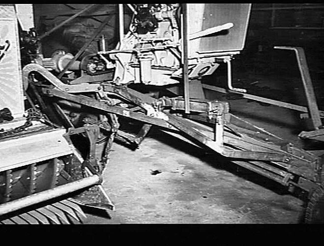 Hydraulic cylinder mechanism for raising and lowering the front on a No.4 engine-functioned header.
