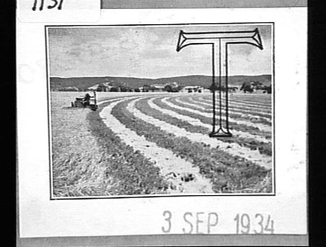 '3 Sep 1934' windrows left after the header has taken the grain from the stalks.